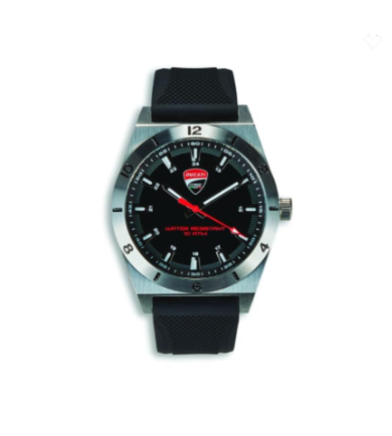 Orologio analogico al quarzo con: – Cassa in acciaio – Vetro minerale – Ghiera in acciaio fissata con viti – Corona a pressione – Cinturino in silicone, 22 mm – Resistente all’acqua 10 ATM – Movimento Miyota 2035